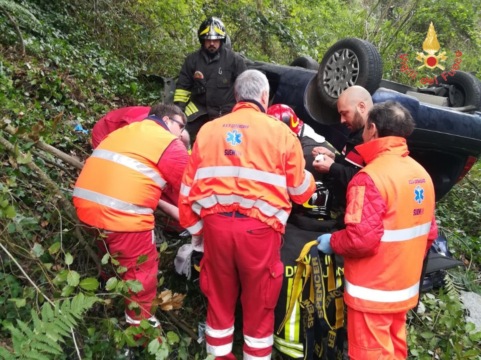 Una Lancia Y, per cause in corso di accertamento, usciva fuori strada finendo la sua corsa in una scarpata di oltre 50 metri. Nella vettura un solo passeggero che, da prime valutazioni, riportava ferite non gravi.