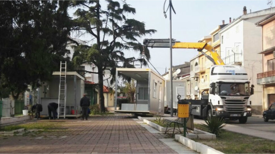 E container fu! A grande sorpresa, soprattutto per la comunità del posto, nel pomeriggio di giovedì 1 febbraio, due grossi automezzi ed una squadra di operai specializzati sono giunti a Torretta ed hanno subito iniziato a sistemare i container che ospiteranno (speriamo per un breve periodo) i provvisori uffici postali, chiusi, com’è noto, dalla fine di settembre scorso per l’inagibilità dei locali siti al piano terra di una palazzina in Corso Garibaldi, a poca distanza dalla stazione ferroviaria