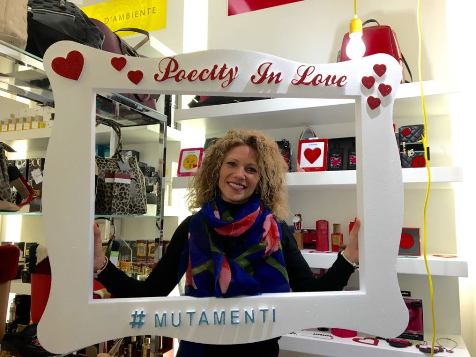 Dal 7 al 14 febbraio il photobooth di Poecity in love sarà posizionato presso Joy Evelyn concept store, dal 15 al 21 febbraio da via Veneto scarpe, dal 22 al 28 febbraio da Intimo io e te su via Roma.