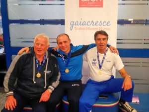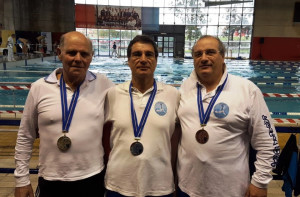 I tre atleti hanno portato a casa ben 5 medaglie su 8 gare disputate con prestazioni molto interesanti. In particolare da sottolineare l’eccellente “vena” di Francesco Pettinato che è salito due volte sul podio sia nei 100 Dorso, argento con 2’17″16, che nei 100 Rana, oro con 2’26″03. Non da meno Francesco Garofalo impegnato nei 200 Misti con un argento conquistato in 3’26″41 ed ancora argento vinto nei 200 Stile Libero in 2’46″33. Bene anche Salvatore Suppa salito sul terzo gradino del podio nei 200 Misti nella categoria M55.