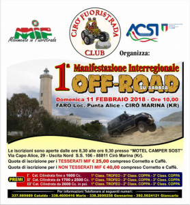 Domenica 11 febbraio 2018, l’evento che tutti gli appassionati di Fuoristrada aspettavano da tempo, 2 kilometri di pista sulla sabbia, con curve ostacoli e tanti veicoli con tanti cavalli, si confronteranno sulla spiaggia del Faro di Punta Alice.