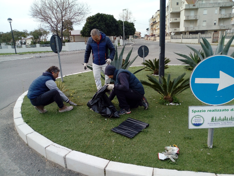 Nel frattempo le nostre attività di manutenzione gratuita delle aiuole continuano, l’ultima domenica 18 febbraio che ha visto i volontari di Città Pulita impegnati a ripulire lo spartitraffico in erba sintetica nel lungomare Sud. Per quest’area si registra la presenza di alberi di ficus che orami necessitano di interventi di potatura per ridurne il volume, tenuto conto che le chiome hanno ormai invaso la strada. Ne approfittiamo per chiedere al commissario di occuparsene al più presto, intanto attendiamo che si concretizzi questa convenzione per dare il via libera alle nostre iniziative.