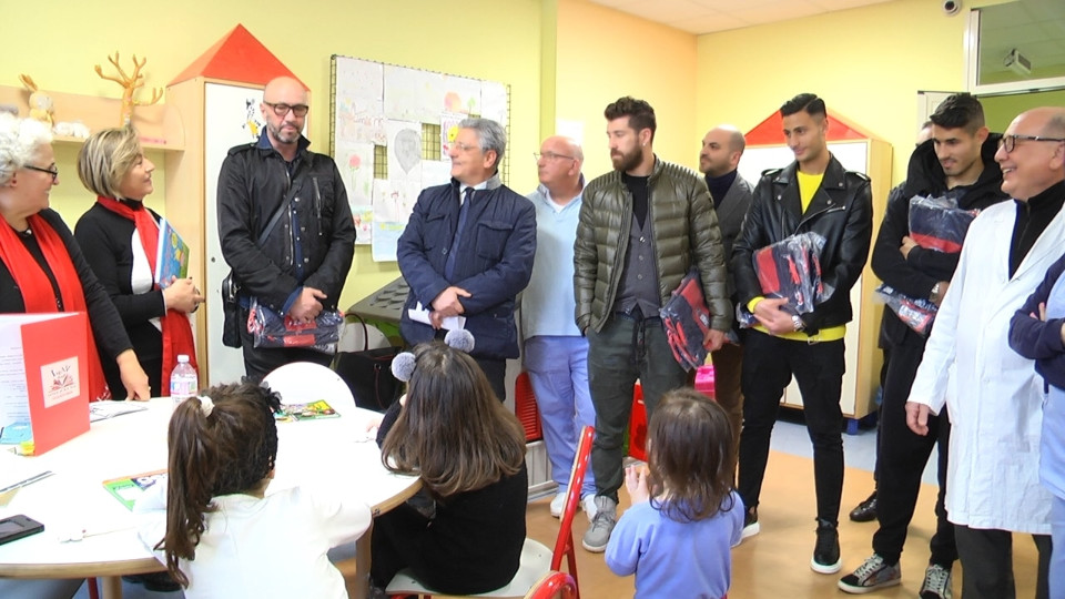 Ma il momento più significativo è stato senz’altro quando i rossoblù hanno raccolto l’abbraccio dei bambini e dei loro genitori e, visibilmente commossi, non hanno lesinato sorrisi, autografi e foto ricordo: una piccola dose di sorrisi e un pomeriggio di spensieratezza e gioia per i pazienti di un reparto delicato come quello di Pediatria.