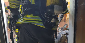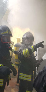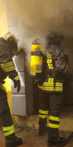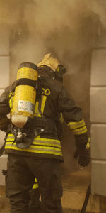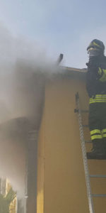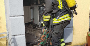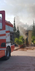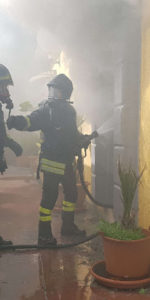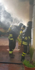 Immediatamente dalla caserma partivano 2 automezzi, una APS Auto Pompa Serbatoio ed una ABP autobotte in supporto, giunti sul posto si constatava che l’incendio si era propagato su gran parte dell’appartamento posto al piano terra, gli uomini dei vigili del fuoco entravano nello stesso ormai interessato dalle fiamme per cercare di spegnerle ed evitare il pericolo di incendio anche ai vicini locali adibiti a civili abitazioni.