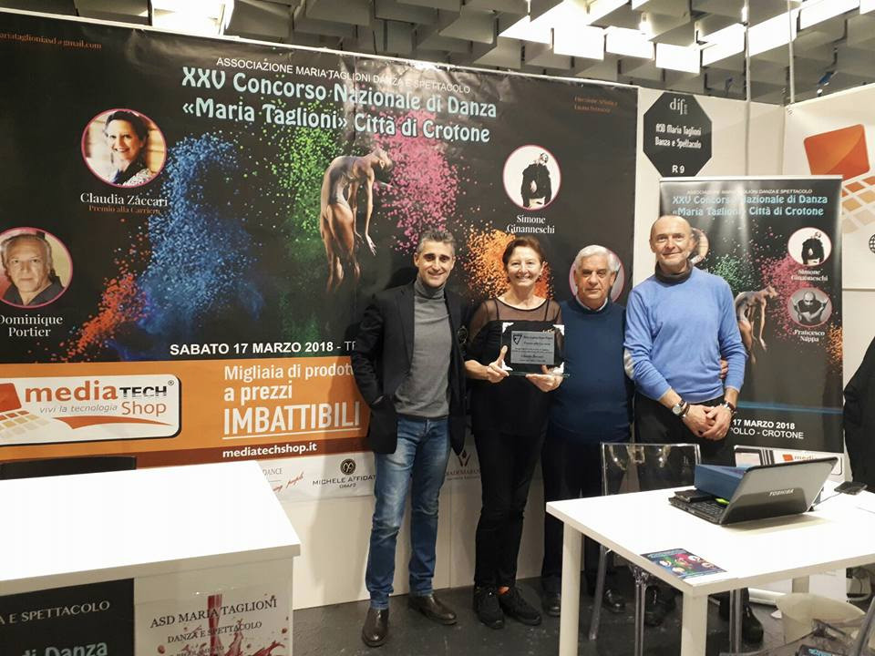 Nell’ambito dell’innovativo progetto di comunicazione “dancing people 2018” rivolto a tutte le scuole di danza del territorio nazionale e grazie al main sponsor del progetto, “Mediatechshop”, brand italiano di e-commerce specializzato in prodotti di elettronica di consumo, telefonia e accessori, informatica e gaming, abbiamo avuto la possibilità di allestire uno stand portando alla ribalta nazionale il nostro “ XXV Concorso Nazionale di Danza MARIA TAGLIONI Città di Crotone”, scelto come evento principale del progetto di comunicazione proprio per le sue peculiarità che lo anno contraddistinto in 25 anni, ovvero elevata qualità artistica e organizzazione impeccabile apprezzato dalle scuole partecipanti.