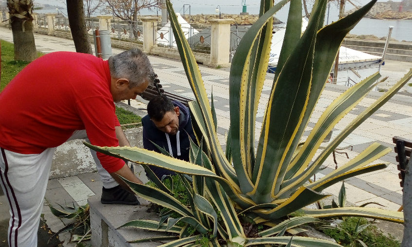Città Pulita, domenica 11 Marzo, di prima mattina, i soci volontari si sono riuniti per dare una ripulita alle piante grasse della specie aloe che avevano invaso le aiuole di fronte la pasticceria S. Lucia.
