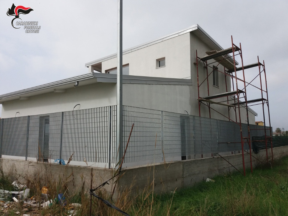 Il manufatto, quasi completato, è stato notato dai militari della stazione Crotone durante l’attività di controllo del territorio. Esso era stato edificato in tempi piuttosto ristretti mediante l’uso di una struttura portante in acciaio con pannelli coibentati, perfettamente rifiniti. Gli accertamenti avviati presso gli uffici comunali hanno evidenziato che l’opera era priva di atti legittimanti l’edificazione.
