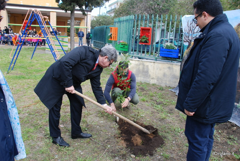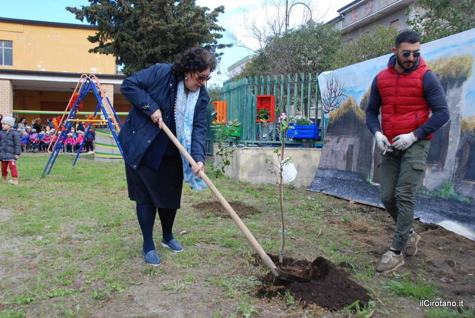 Una cerimonia della piantumazione curata nei minimi dettagli, che ha preso il suo via con la messa a dimora di un albero da frutto per ogni classe del plesso, alberi di limoni, di pesco, prugne e mandarino, intervallati da intrattenimento musicale del gruppo Kididà, e da brevi sketch curati dai bambini e dalle loro maestre.