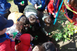 Il Dott. Guerino Morise – Biologo, è stato attento e attivo nella realizzazione dell’avvio di questo progetto. Ci ha spiegato infatti che la pianta, che con cura è stata immessa nel terreno, è solo l’inizio di un processo lungo e pieno di attenzioni che bisogna dare alla pianta per poterne vedere i frutti. Quindi un impegno di tutti i bambini guidati dagli adulti di sostenere questo processo.