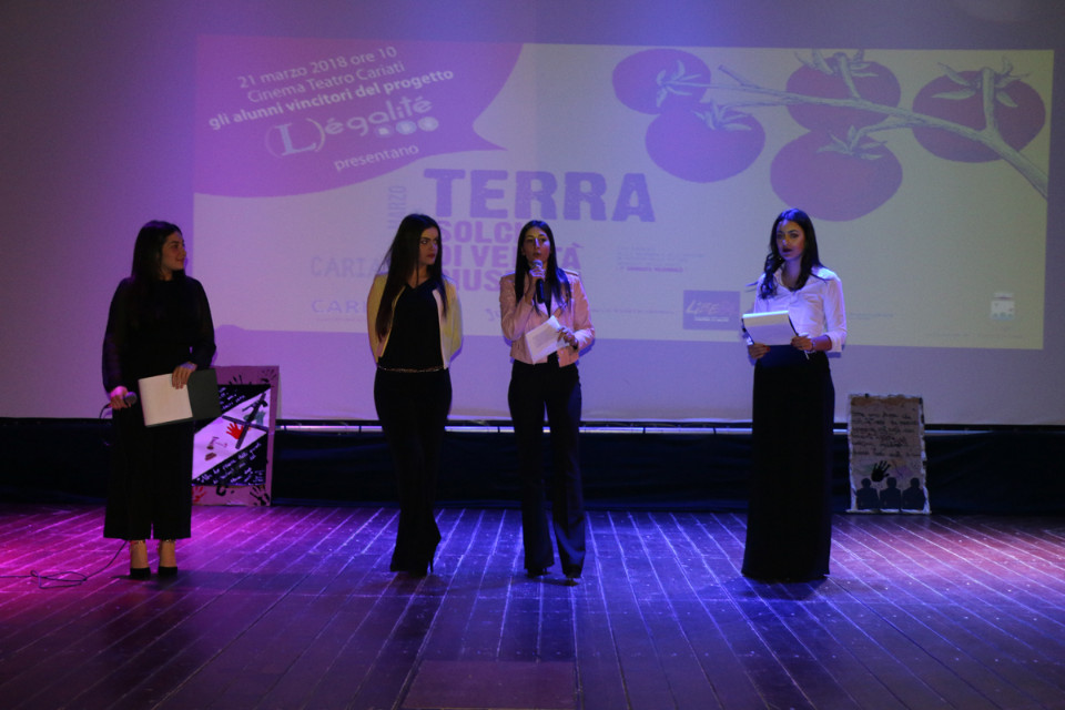 Le due ragazze, che fanno parte del gruppo di studenti che ha vinto il primo premio del progetto Légalité, hanno introdotto le performance dei loro coetanei, intervistato gli ospiti e hanno anche dimostrato un certo piglio risoluto in un appunto conclusivo: “a quei ragazzi che nel corso dell’evento hanno ridacchiato e si sono distratti, vogliamo dire: cercate di riflettere sui temi di cui abbiamo discusso oggi”.