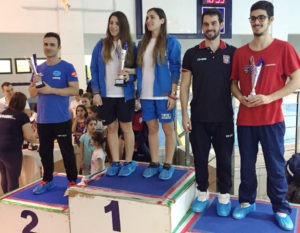 Ierardi Federica, Ierardi Dalila, Tonolli Miriam e Trocino Carla hanno raggiunto il terzo posto nelle due staffette femminili 4×50 sl e 4×50 misti.