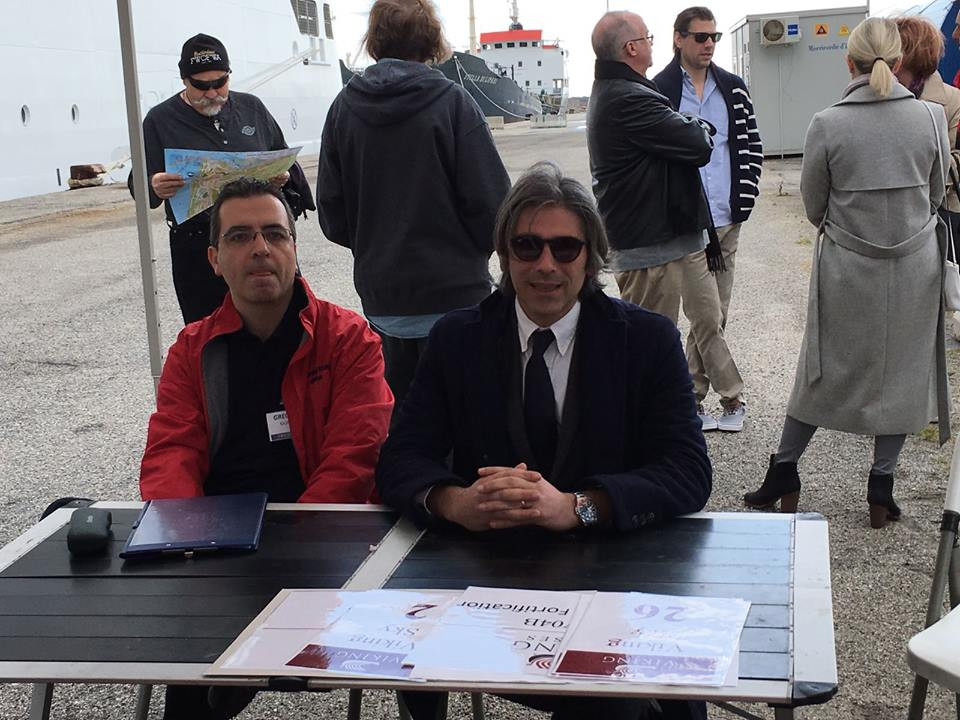 Ad accogliere alla banchina del porto gli ospiti provenienti dagli Stati Uniti e per presentare i dodici arrivi che si succederanno nel corso di questi mesi l’assessore al Turismo Giuseppe Frisenda con Gregorio Mungari della società Alfa 21 che cura la logistica degli arrivi.