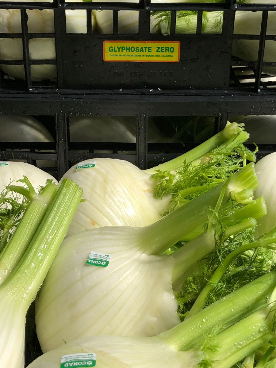 Con la scelta fatta dalla Regione Calabria di eliminare dal disciplinare di produzione integrata la molecola del Glifosate, potenzialmente cancerogena, l’ortofrutta calabrese recupera competitività, redditività e riscontra il favore dei cittadini – consumatori e della GdO per via della accresciuta salubrità delle produzioni e la notevole biodiversità presente nei vari territori calabresi . Una opzione vincente che porta valore aggiunto e che dopo le zucchine, le fragole e le cipolle vede anche i finocchi del crotonese etichettati “Glifosate Zero” . L’azienda Vetere ha colto questa straordinaria opportunità valorizzando oltre 100 ettari di finocchi prodotti e confezionati ad Isola Capo Rizzuto (KR) rigorosamente etichettati con il marchio di origine ” Io sono 100% calabrese” sempre di più utilizzato per distinguere i nostri prodotti ortofrutticoli di stagione. “Tale impostazione, che premia la , in linea con le richieste del mercato è stata subito utilizzata dall’OP Agrinsieme di Aprilia (LT) che associa importati aziende calabresi – sottolinea Molinaro presidente di Coldiretti Calabria – un sicuro valore aggiunto che dalla produzione alla lavorazione rimane sul territorio e favorisce il lavoro diventando un ottimo esempio di integrazione (vedi foto) in un territorio con una presenza significativa di persone extracomunitarie”.