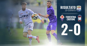 FIRENZE – Il Crotone torna sconfitto dal Franchi. Rossoblù sotto dopo tre minuti con un gol di Simeone che raccoglie una respinta di Cordaz. Fase centrale del primo tempo nervosa con l’arbitro Valeri che ammonisce in 18 minuti Ricci, Mandragora e Stoian (gli ultimi due, diffidati, salteranno il prossimo match). Il Crotone prova a reagire e Benali per poco non trova l’angolo giusto. Nella ripresa gli squali rientrano bene ma restano in dieci per l’espulsione per doppio giallo a Capuano (anche lui sarà squalificato) e poco dopo la Fiorentina raddoppia con Chiesa. Nel finale Crotone che ha ancora l’occasione per accorciare le distanze ma Sportiello nega a Trotta la gioia del gol. Domani mattina subito in campo: la testa va subito alla trasferta di mercoledì a Torino per il recupero contro i granata della ventisettesima giornata.