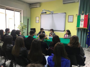 La relatrice d’eccezione ha poi spiegato ai giovani e attentissimi interlocutori che il mondo del lavoro è cambiato radicalmente. Inseguendo percorsi di studio e professioni più intellettuali e quotate, si sono perse attività manuali come l’artigianato e l’agricoltura. Il prestigio sociale della laurea ha fatto scomparire, per intere generazioni, mestieri quali: il sarto, il falegname, il fabbro… Basti pensare che le imprese giovanili, nel Meridione, riguardano per l’80% la tecnologia. La dott.ssa Di Stani ha pertanto invitato a rivalutare le attività manuali, inserendole fra i settori d’interesse, esortando a conoscere e ad approfondire le nuove tecnologie e strategie di marketing, per ridare lustro a attività ormai dimenticate, anche in favore di produzioni di nicchia. Per stimolare gli studenti e le studentesse ad inseguire i propri sogni in maniera proficua, ha poi parlato della sua esperienza professionale, ricordando che, ancora oggi, in Italia, per l’universo femminile è molto difficile affermarsi: bisogna studiare, impegnarsi e sacrificarsi di più degli uomini. Le politiche a favore delle famiglie inoltre non tutelano fino in fondo la donna e gli orari di lavoro generalmente non rispettano il suo doppio ruolo di madre e lavoratrice.