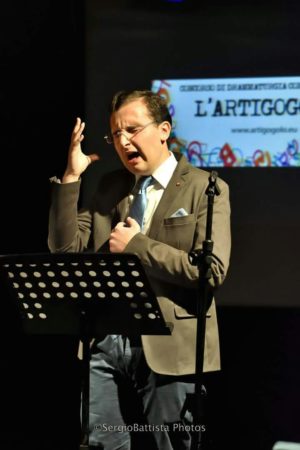 La platea dell’Ar.MaTeatro ha risposto con uno scrosciante applauso alla recitazione sul palco di alcuni stralci dell’opera da parte dell’autore, che ha saputo interpretare in modo magistrale i suoi stessi versi, emozionando gli astanti.