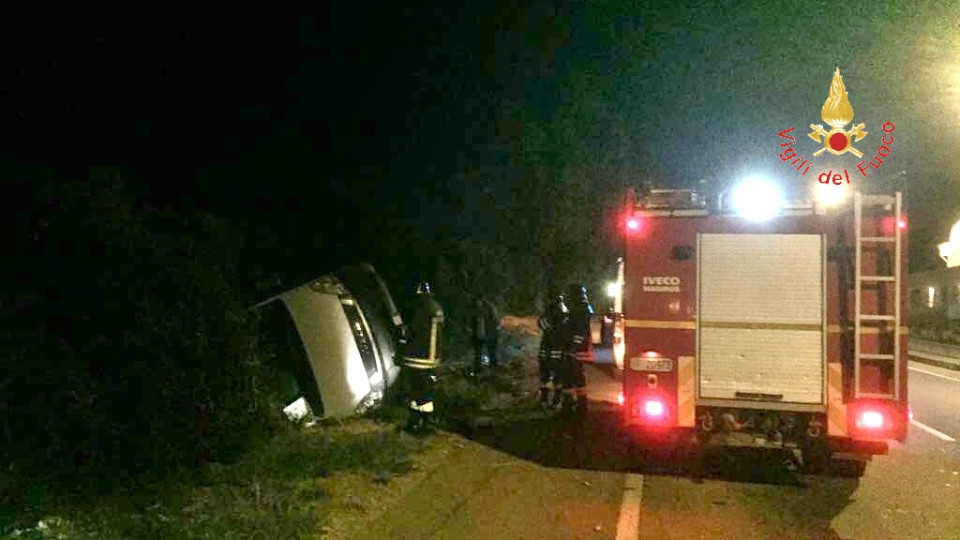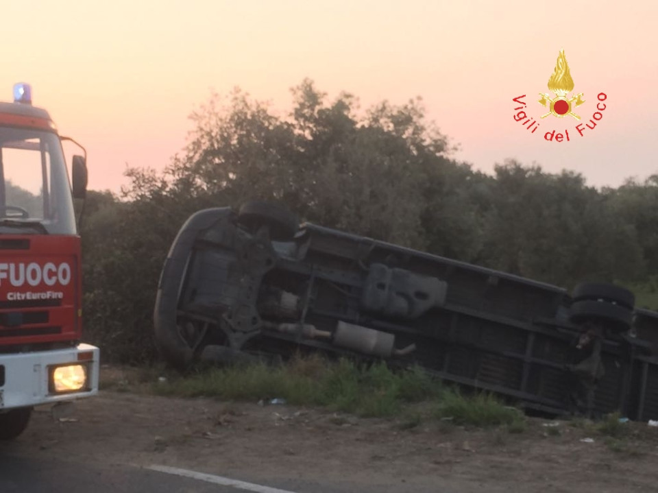 Un autofurgone iveco daily per cause in corso di accertamento finiva fuori strada ribaltandosi su di un lato.