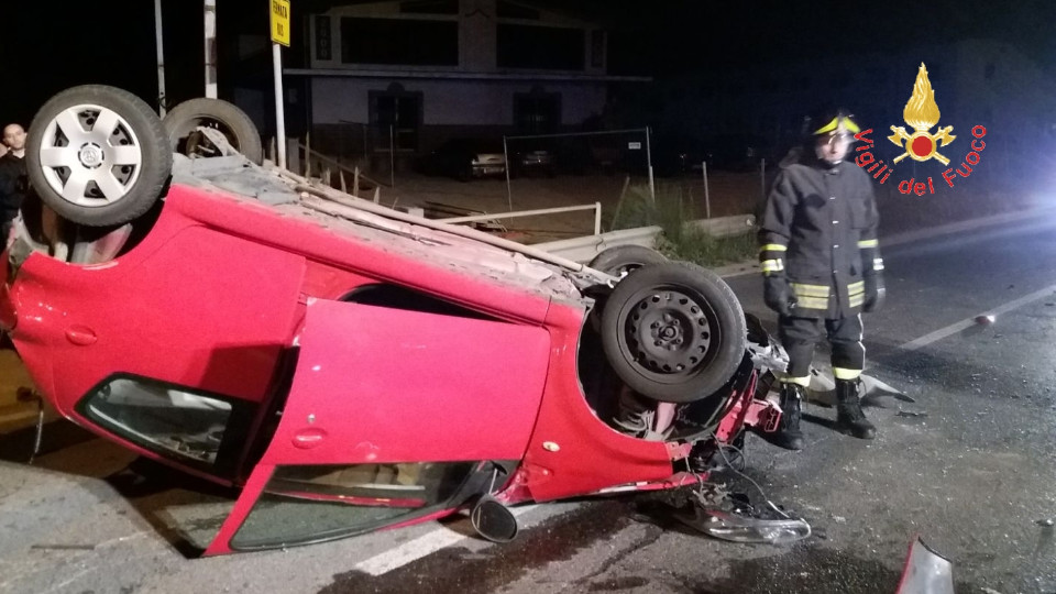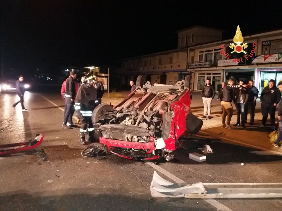 Ore 2.00 circa ribaltamento autovettura sulla SS106 nel comune di Davoli (CZ).