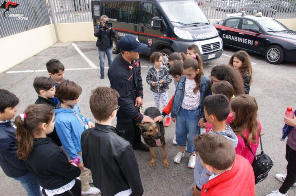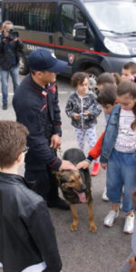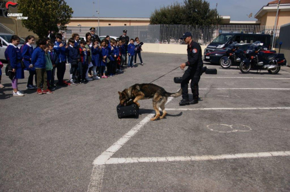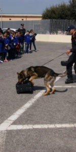 La presenza di una rappresentanza del Nucleo Cinofili, in forza allo Squadrone Eliportato Cacciatori Calabria di Vibo Valentia, ha consentito di illustrare anche le funzioni di questo reparto. E’ stato spiegato ai ragazzi, come gli animali vengano addestrati improntando l’attività sul gioco, evitando qualunque tipo di maltrattamento su di essi, e del loro ruolo importantissimo nelle attività dell’Istituzione.