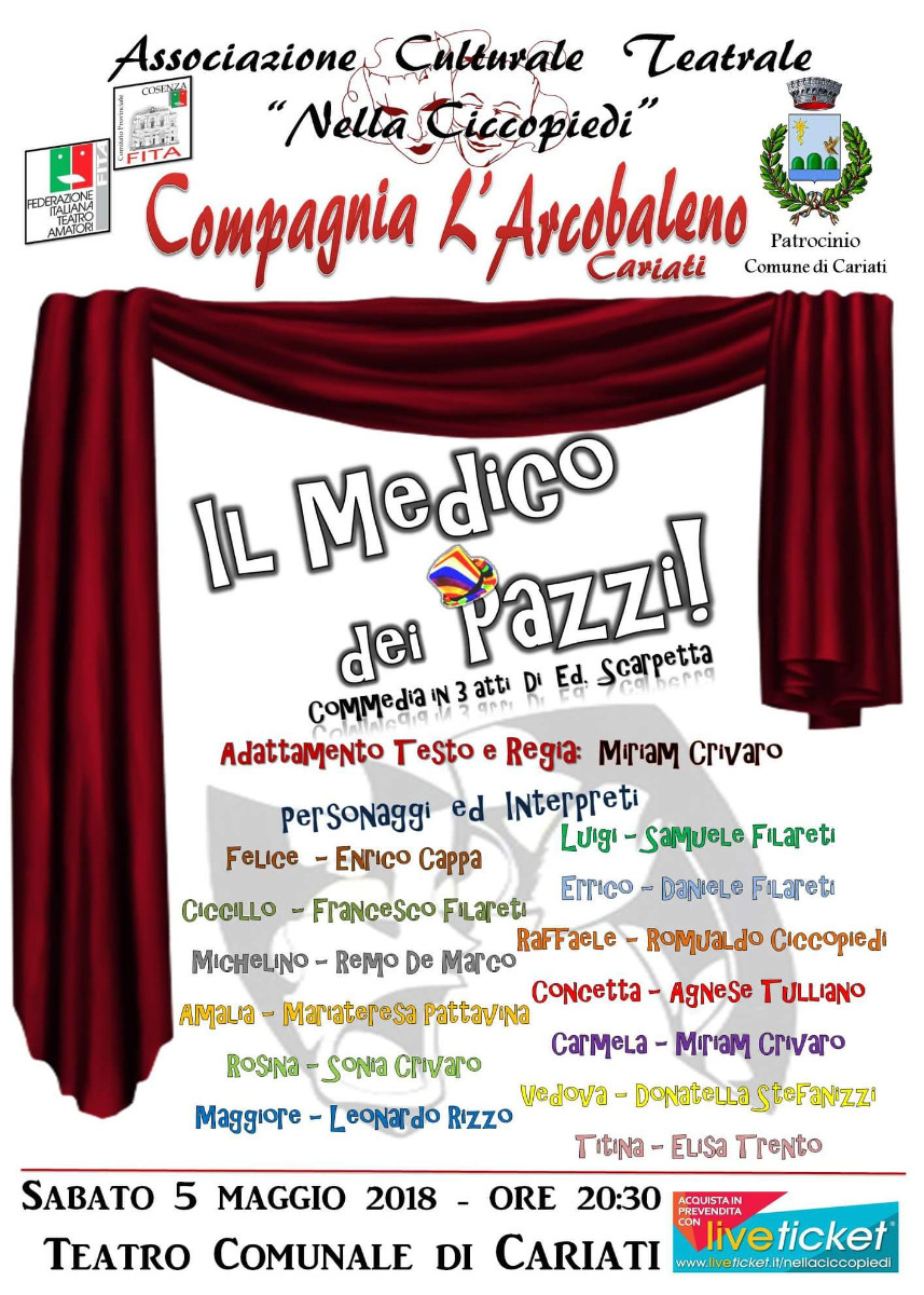 “Il Medico dei Pazzi” sabato 5 maggio al Teatro comunale di Cariati