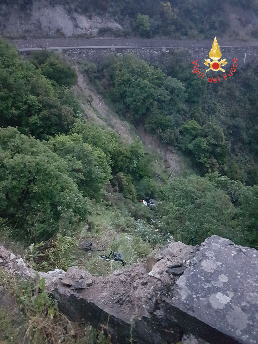 Una vettura Ford Kuga per cause in corso di accertamento, perde il controllo, esce fuori strada, abbatte il muretto di delimitazione della carreggiata e termina la sua corsa in una scarpata di circa sessanta metri di altezza ribaltandosi. A bordo della vettura il solo conducente che, uscito autonomamente dall’abitacolo, veniva soccorso e recuperato dal personale vvf in collaborazione al personale medico del Suem 118. Lo stesso, ferito ma cosciente, veniva trasportato presso il presidio ospedaliero di Catanzaro.