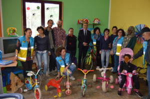 La consegna delle bici, caldeggiata dal direttore del Centro d’accoglienza Vitaliano Fulciniti, è avvenuta ieri pomeriggio all’interno della ludoteca del Centro di Sant’Anna, ad opera di Giuseppe Aiello di Ciclofficina e di Angelo Gallo e Giovanna D’Alessandro, quali rappresentanti del “Teatro della maruca”. Erano poi presenti alcuni operatori della struttura e, naturalmente, i piccoli migranti, visibilmente euforici ed emozionati per il dono delle biciclette. È stato a dir poco commovente l’abbraccio che un bimbo di 8 anni ha riservato al Direttore Fulciniti, per aver mantenuto fede alla promessa del dono della bicicletta che lo stesso Direttore gli aveva fatto qualche settimana fa. Così come è stato altrettanto emozionante per tutti coloro che operano nella struttura, vedere gli stessi bambini divertirsi e gironzolare con le bici per le vie del Centro.