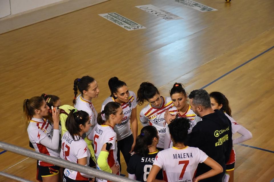 La caparbietà dei Presidenti Capalbo e Scigliano impedisce però che la complessità della situazione si trasformi in una deriva: viene chiamato alla guida tecnica Davide Monopoli che porta con se il secondo Alessio Aloise e comincia da subito un lavoro intenso che, anche grazie all’arrivo dell’esperta Alessandra Piccione, porta la formazione giallorossa a crescere partita dopo partita: la sensazione di compattezza e di crescita tecnica trova il suo culmine nella vittoria di Bari del 18 febbraio 2018, una grande soddisfazione per un gruppo di atlete che ha lavorato sempre con passione e professionalità superando l’amarezza delle sconfitte.