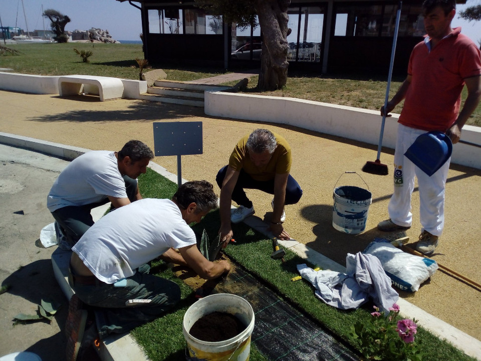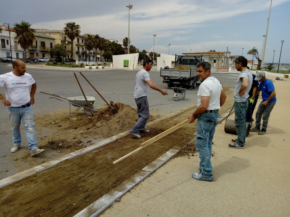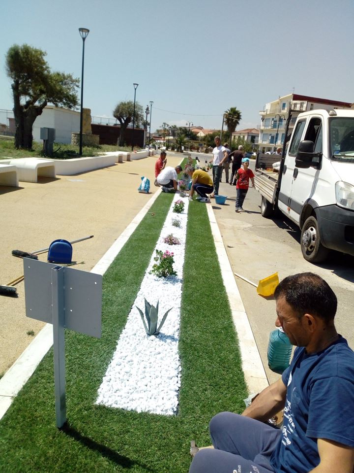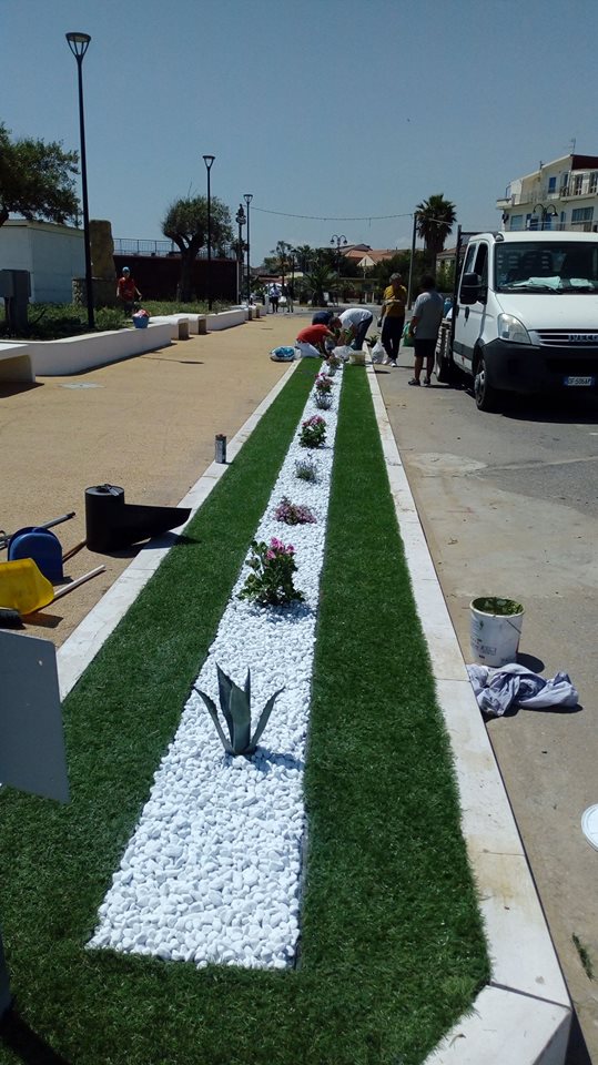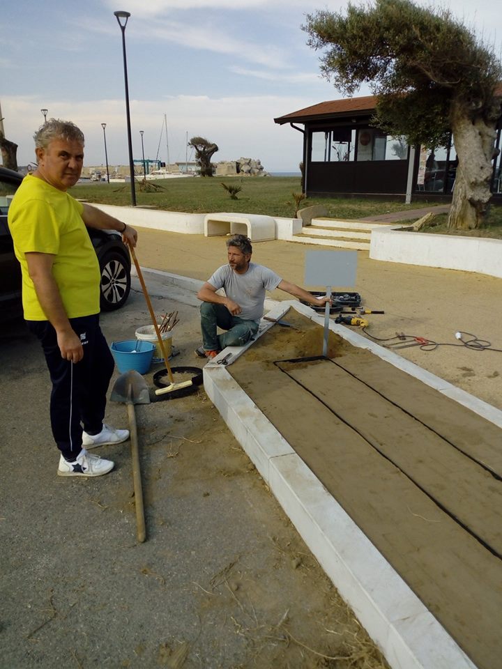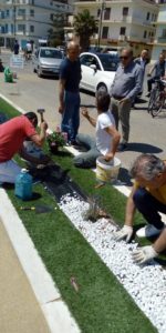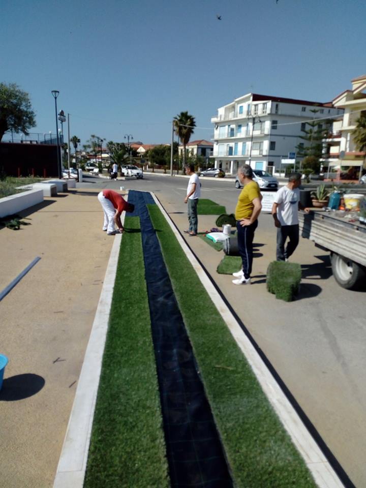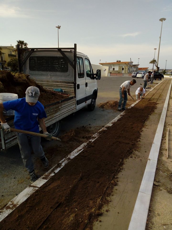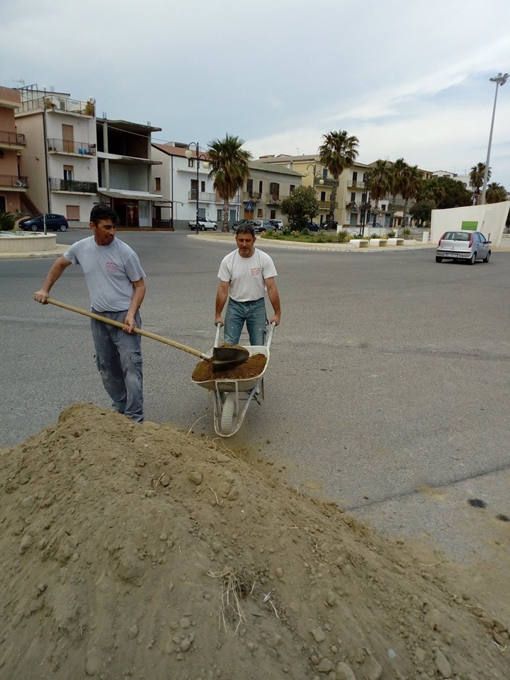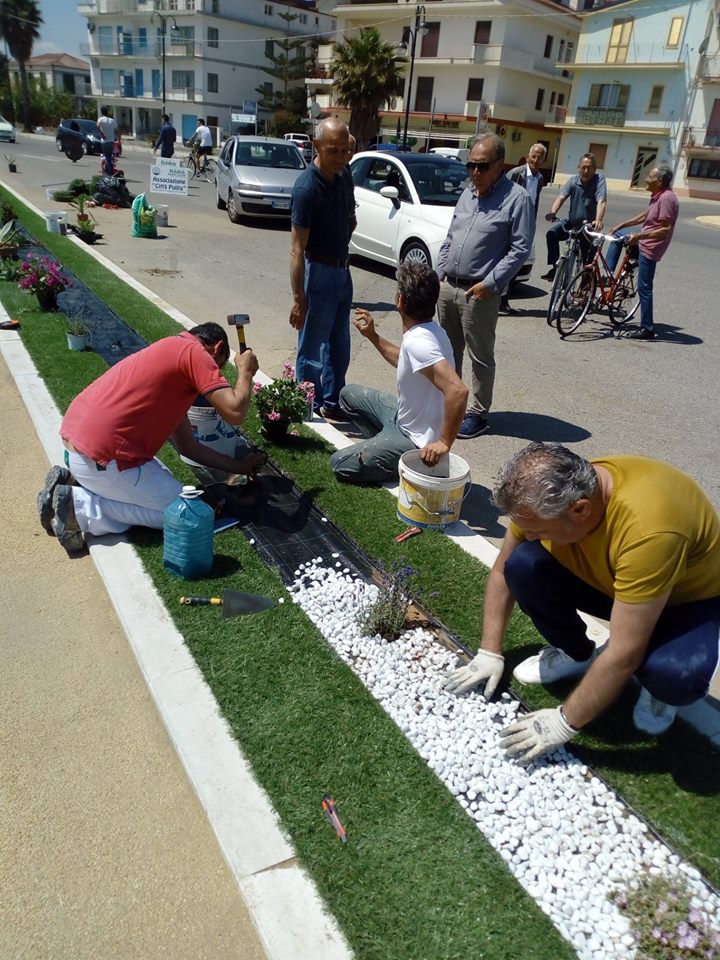 Hanno preso parte ai lavori i soci di Città Pulita: Cesare Filippelli col suo piccolo Vincenzo, Strumbo Fortunato, Benevento Tonino, Gianni e Francesco De Simone e il socio Nino Trifiro’ che ha procurato il terriccio agricolo per la realizzazione del sottofondo.