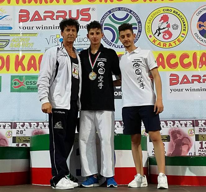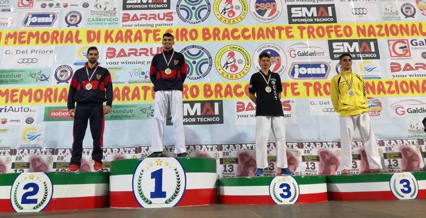 Domenica 13 maggio ad Eboli (SA) presso il mastodontico Pala Sele attrezzato con ben 12 aree di gara, un ennesimo successo è stato portato a casa dal bravo Emanuel Lo Iacono, atleta già pluri-medagliato che, in occasione del 28° Trofeo Nazionale denominato “Memorial Ciro Bracciante”, ha conquistato nella categoria -75 kg Seniores, una importante medaglia di Bronzo. Il team dell’ASD Accademia Karate Crotone, accompagnato da Alfonso Gaetano e guidato dall’inossidabile maestro Rosario Stefanizzi ha riportato anche un onorevole 7° posto con Pasquale Gaetano il quale purtroppo ha visto sfuggire per un soffio la possibilità del ricupero alla soglia della semifinale della categoria -68 Juniores. Dopo la festa per la Stella d’ Argento al merito Sportivo assegnata dal Coni all’ ’Accademia Karate Crotone e quella d’ Oro al M° Enzo Migliarese nella Sala Consiliare del Comune di Crotone, ecco, subito pronto, a conferma dei tanti risultati conseguiti ,un altro successo con questo importante risultato che va ad accrescere il lauto palmares della scuola di Karate crotoniate. Quanto accaduto in questi ultimi giorni testimonia, se mai ce ne fosse bisogno, la qualità dell0 Staff Dirigenziale e Tecnico dell’AKC dove, da sempre , vengono coordinati in modo impeccabile tutti i settori.
