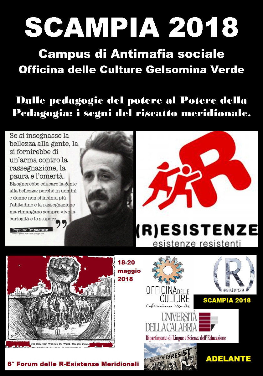 Sono 50 gli studenti dell’Università della Calabria che parteciperanno al 1° Campus dell’Antimafia sociale organizzato dal 6° Forum della Rete delle R-Esistenze Meridionali che si terrà a Scampia, da domani, venerdì 18, fino a domenica 20 maggio, presso l’Officina delle Culture Gelsomina Verde.