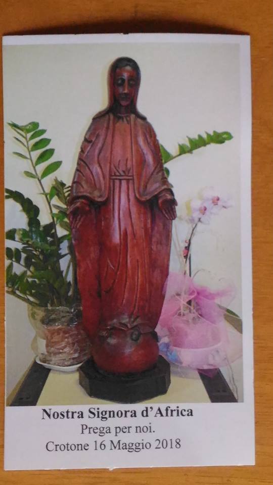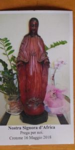 La statua, che riproduce la Vergine Maria “Notre Dame d’Afrique”, situata nella basilica eretta ad Algeri nel 1858, è giunta a Crotone con l’intenzione dei Missionari Adorini di infondere la fede per la fraternità e la pace fra i popoli, nell’opera di riconciliazione favorita da Maria, modello di accoglienza e di amore.