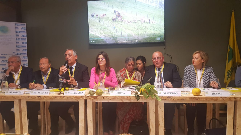 “Trasformare la biodiversità in futuro per tutto il mondo, la Calabria mi ha colpito favorevolmente dopo quello che ho visto e sentito oggi è un esempio positivo che trasferirò nel mondo. Il coraggio della Calabria di affrancarsi dalle multinazionali dei pesticidi rappresenta un esempio da emulare in Europa, i paesi in via di sviluppo e del quarto mondo ”. Questo l’impegno preso, su sollecitazione del presidente della Coldiretti Calabria Pietro Molinaro, da Vandana Shiva scienziata e ambientalista che è stata l’ospite d’onore alla Giornata della Biodiversità organizzata da Coldiretti e Anbi Calabria. La manifestazione, nell’anno internazionale del cibo italiano nel mondo, si è svolta nella Piazza Etica Contadina Calabrese (Pecco) della Cittadella Regionale. Vandana Shiva diventerà ambasciatrice del riscatto della regione Calabria che ha puntato sulla biodiversità, sulla qualità del cibo a kmzero. Nei saluti istituzionali, Marsio Blaiotta Presidente ANBI Calabria: ha presentato il programma della settimana della bonifica dai Consorzi e ha riassunto l’impegno in qualità, sostenibilità e acqua certificata per produrre il vero cibo made in Calabria; Nicola Capogreco responsabile PECCO: ha ribadito l’impegno nell’utilizzo delle produzioni locali della rete di Campagna Amica; Stefano Aiello: commissario ARSAC: sulla biodiversità l’Ente ha iniziato nel 2006 ciò ha permesso di recuperare varietà e razze a rischio di estinzione; lo storico Piero Bevilacqua: ha insistito nel legame campagna-città per cittadini consumatori consapevoli. Ha illustrato il nesso tra cibo-salute che sarà al centro del manifesto “Food for Health; Antonella Rizzo assessore regionale all’ambiente: la Calabria ha il 30% della biodiversità europea e questo punto di forza la Regione lo vuole tutelare e valorizzare, realizzando per la prima volta un osservatorio regionale e destinando ingenti risorse comunitarie attraverso bandi Por per 20 milioni di euro; Benito Scazziota ANBI: ha parlato dei progetti irrigui e la necessità di investimenti su dighe e invasi gestiti dai Consorzi di Bonifica anche perché i cambiamenti climatici hanno costretto a rivalutare i fabbisogni irrigui; Francesco Santopolo agro ecologo: la biodiversità va preservata non distruggendo le specie ma rivalutando anche vecchie pratiche contadine; Armando Vitale Presidente IMES: ha auspicato percorsi comuni con regione e Coldiretti nelle scuole , per costruire il buon gusto. Nel suo intervento Vandana Shiva ha detto che la biodiversità è la vera vita e la vera ricchezza, ed è la cosa più importante oggi al mondo. La biodiversità è un modo di pensare, di vivere e di interpretare il mondo, perché ribalta la visione di quelle aziende che mettono in primo piano i pesticidi e gli organismi geneticamente modificati e che rischiano di distruggere il mondo e di produrre danni economici ai contadini. In un mondo dominato da fake news, cibo falso e finta ricchezza, la biodiversità contraddistingue il vero e il benessere. Adesso bisogna orientare tutte le nostre visioni verso una cultura che si ricolleghi alla biodiversità. La biodiversità – ha proseguito -è importante per il mondo intero ed è doppiamente importante per la Calabria: il messaggio che invio alla Calabria è quello di proteggere il cibo buono, il cibo veritiero, il cibo prodotto con meccanismi salutari e che sono il punto di forza dell’economia locale. E’ un messaggio che la Calabria stessa sta dando al mondo, e cioè che la biodiversità è il sistema da cui bisogna partire per il benessere di tutti. Sulla base di queste affermazioni ritengo che è significativo il NO all’accordo CETA della Regione Calabria e Coldiretti. Il Presidente della Regione Mario Oliverio ha rivendicato il no all’uso del glifosato, con il grande contributo della Coldiretti, primi in Italia. Così come – ha riferito – abbiamo detto no alla cementificazione selvaggia e a nuovi impianti di energia eolica. Crediamo con forza al valore dell’agricoltura e stiamo spingendo affinché aumenti una cultura della filiera corta. Promuoveremo, con Coldiretti, questo stile di vita attraverso la scuola, con dei bandi per insegnanti e studenti, così come stiamo mettendo in atto una strategia sull’acqua, la prima volta nella nostra regione con un tavolo per i progetti sui grandi invasi. A breve saranno completate le dighe del Menta e del Metramo. Ringrazio Vandana – ha proseguito – perchè da voce a problematiche non effimere. È ora di rivedere le regole imposte dal Wto e dall’Ue in campo agricolo – ha aggiunto Oliverio -. La Calabria farà sempre la sua parte contro chi mette a rischio il patrimonio ecologico”. Pietro Molinaro concludendo ha parlato di una giornata importante che ci fa prendere sempre di più coscienza delle nostre potenzialità e sulla necessità di non perdere la leadership sul cibo di qualità. Quando si è determinati – ha concluso – le battaglie di denuncia e trasparenza si vincono anche contro le multinazionali. Al termine Vandana Shiva e il Presidente Oliverio hanno firmato la petizione Coldiretti “Stop al cibo falso”.