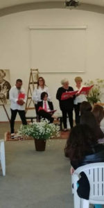 Si alzano dal pubblico i lettori LaAV, lettura ad alta voce di Cirò Marina, si alzano e iniziano a leggere delle frasi spiegando il perché leggere per gli altri è importante. Candida De Marco, Amalia Manno, Giovanna Semerano, Maria Puleo, Slavatore Papaianni, Salvatore Bombardiere, Rosa Caruso, Virginia Marasco, Berenice Russo ecco i nomi dei lettori presenti all’evento per la promozione della lettura. Letture, arte e Fiori di Maggio è il connubio perfetto tra frasi e frammenti di libri, da Michela Murgia e Alda Merini alla Agnello Hornoby, passando per la Ferrante e toccando Elizabeth Gilbert, Frida Khalo, Laura Laurenzi, per arrivare anche in terra calabrese con la scrittrice Assunta Scorpiniti, presente in sala.