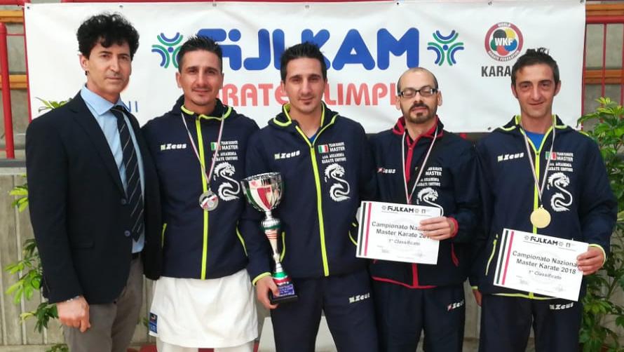 Il 19 e 20 maggio 2018 si è svolto a Quiliano (Savona) il 6° Campionato Nazionale Master di Karate. Oltre 200 atleti finalisti appartenenti a centinaia di società in rappresentanza di 18 regioni si sono dati battaglia per contendersi un posto sul podio. L’ASD Accademia Karate Crotone, nella competizione maschile svoltasi domenica ha assistito all’exploit di Raimondo Calabretta il quale, nei Master C -60 kg, ha riconquistato il titolo perso lo scorso anno e, con la Medaglia d’Oro conquistata in questa competizione, porta a quota 12 il medagliere nazionale personale . Ottimo esordio di Vincenzo Mangano nella classe Master B dove nella categoria – 60kg si è assicurato la sua prima medaglia d’Oro centrando al primo colpo anche il suo primo titolo. Partenza bruciante per il team dell’AKC, egregiamente guidato dal M° Rosario Stefanizzi, che ha galvanizzato i gemelli Gino e Lino Greco tutti e due impegnati nella agguerrita categoria -75kg. Infatti era importante per i due crotonesi andare obbligatoriamente a medaglia per far conquistare all’Accademia un posto sul podio per società. Colpaccio quasi riuscito se non fosse mancato per un soffio l’ Oro di Gino Greco a cui viene assegnata, dopo spettacolari e tirati incontri, la Medaglia d’Argento. La stessa cosa vale per Lino Greco che nella sfortunata ascesa di si è dovuto fermare in finale di poule piazzandosi poi nei ricuperi al 5° posto ad un passo dal Bronzo. Comunque sia la raccolta di pregiato metallo, portato a casa da Gino Greco, Lino Greco, Raimondo Calabretta e Vincenzo Mangano, è bastata per conquistare, nella classifica per società e a soli due punti dalla prima, il secondo posto del podio e quindi Vice Campione d’Italia, testimonianza della ottima scuola calabrese e crotonese e dell’abnegazione e appassionata volontà sportiva di questi Atleti.