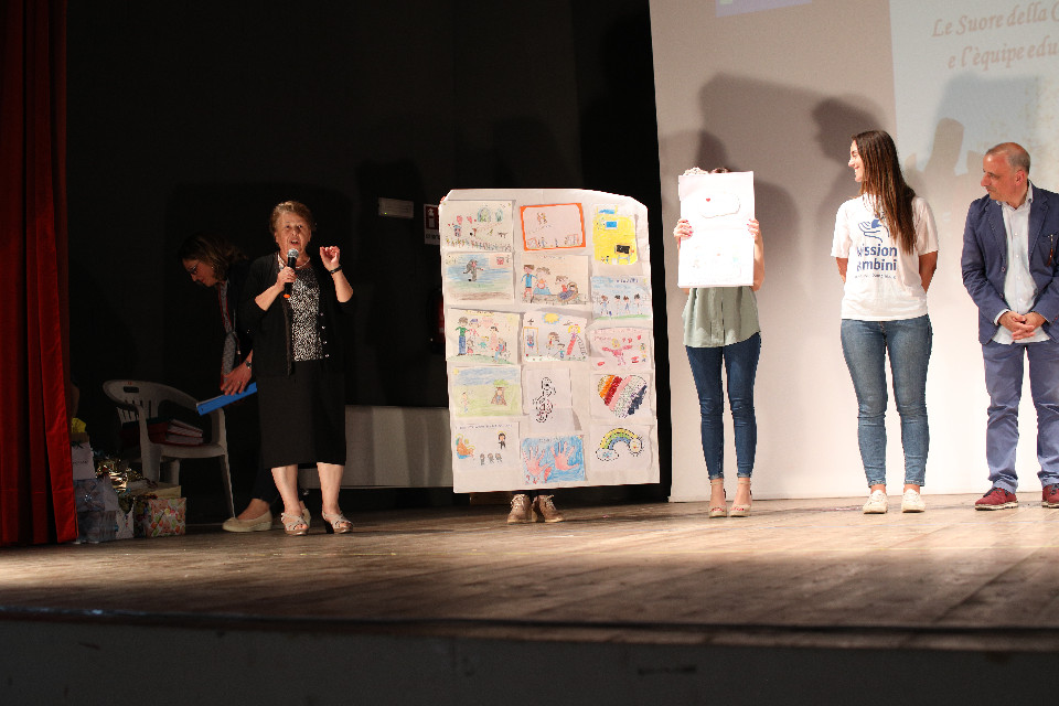 La mattinata ha visto la realizzazione di una sfida nella sfida, perché a coronamento dello stare bene insieme e delle performance dei piccoli interpreti, sono giunti gli amici di una storia d’amore per i bambini. Ormai da anni, la Fondazione “L. e D. Siciliani” collabora con “Mission Bambini”, una Fondazione costituita a Milano nel 2000 e che opera da allora in Italia ed in diversi Paesi del Mondo per sostenere i bambini, in particolar modo nel campo della salute e dell’educazione. In quest’ultimo settore, la collaborazione tra Fondazione “Siciliani” e “Mission Bambini” consente ogni anno di poter ospitare numerosi bambini nel Polo d’infanzia “Siciliani” a titolo completamente gratuito, grazie al concorso dei due Enti morali ed alla raccolta fondi effettuata attraverso il progetto “Adozioni in vicinanza”. Con questo strumento, tanti concittadini danno il loro contributo per sostenere famiglie in difficoltà che si trovano nel nostro stesso territorio.