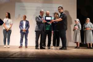Dopo le esibizioni apprezzatissime dei bambini, si è passati alla fase più cerimoniale: il conferimento del premio Madre Rosa, intitolato alla memoria di Giuseppe Strancia, già allievo della Scuola “Siciliani”, prematuramente scomparso a causa di un incidente.