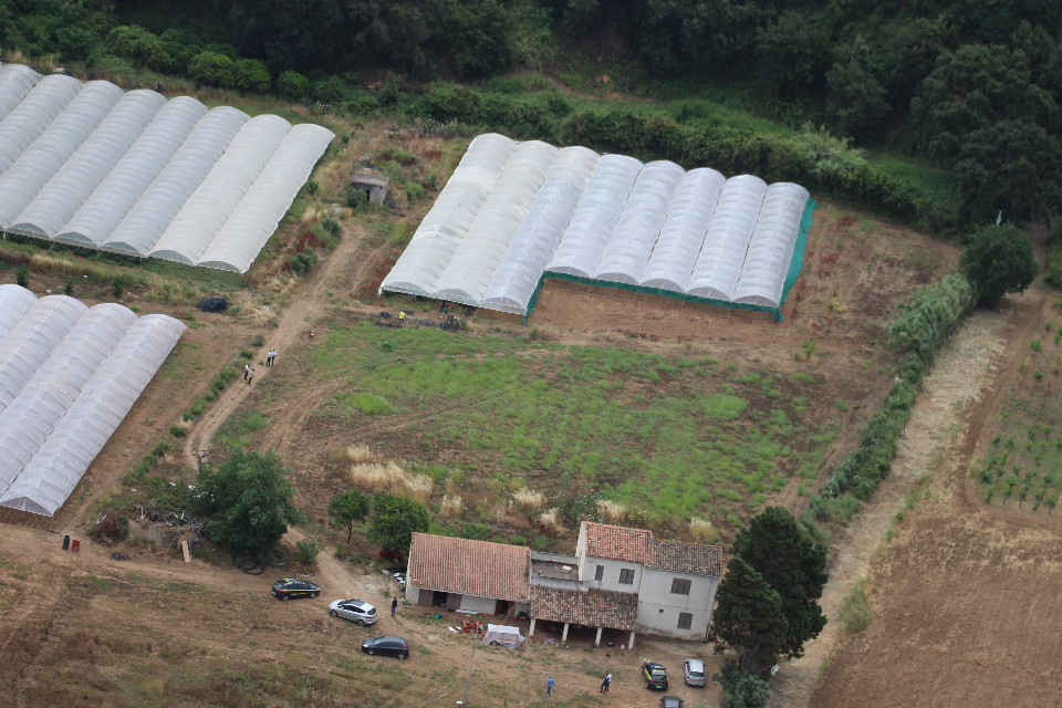 Oltre alle 20 serre già in coltura, è stata altresì rilevata l’esistenza di un’estesa area già predisposta per l’impianto di ulteriori 3200 piante, posizionate in vivaio in appositi contenitori di polistirolo.