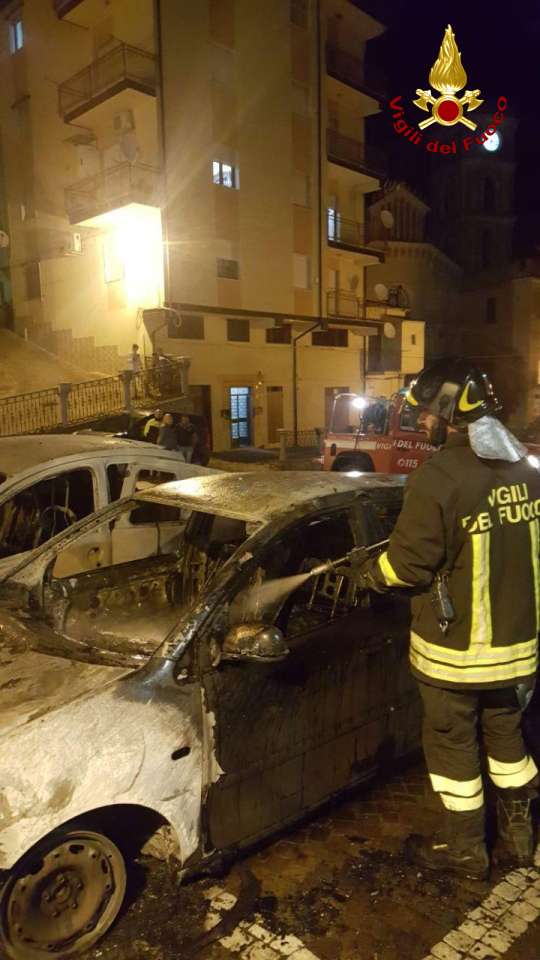 All’arrivo sul posto, non facile per le dimensioni delle stradine del centro storico del paese, la situazione si presentava critica, vi erano due auto in fiamme vicino delle abitazioni e parcheggiate a ridosso del recinto della chiesa dell’Annunziata con altre auto a rischio incendio.