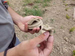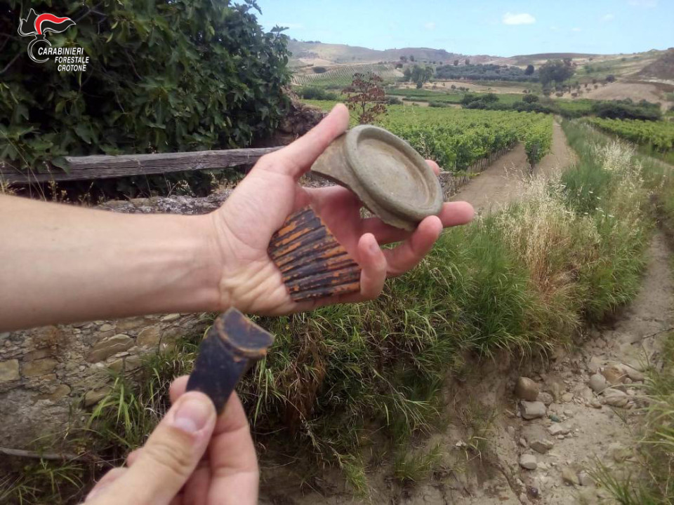 Durante uno dei tanti controlli del territorio i militari della stazione carabinieri forestale Cirò sono rimasti attirati dalla presenza sul terreno recentemente arato di numerosi frammenti di laterizio in un vigneto di nuovo impianto.