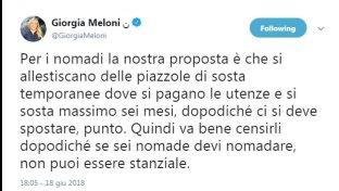 Meloni: "Bene il censimento rom, ma dopo sei mesi nomadare in piazzola"