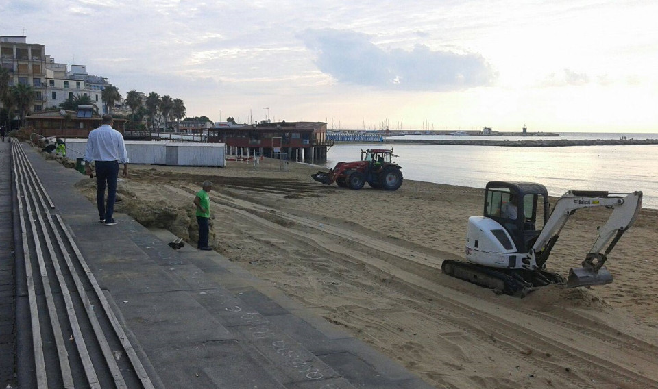 I mezzi già all’alba erano in azione per la sistemazione del litorale cittadino.