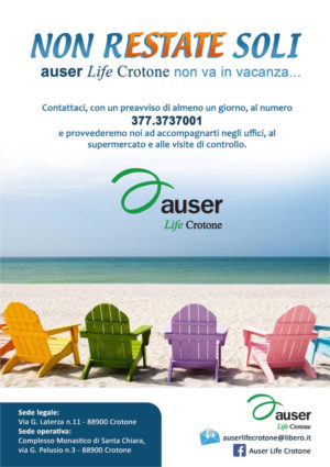 Nasce proprio da queste riflessioni per l’estate 2018 la volontà di Auser Life Crotone di portare avanti il progetto “non rESTATE soli”.
