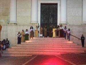 Un successo e tanta emozione ha scaturito la rappresentazione teatrale in abiti d’epoca de: “Il vincitore dei demoni- San Nicodemo da Cirò” – Tra storia, musica, sapori tradizioni, ripercorrendo quello che sono stati i miracoli che il Santo ha compiuto nell’allora Ypskron, odierna Cirò, da fanciulletto. E’ stato un grande momento culturale, profondo che ha emozionato il pubblico accorso in piazza Pugliese, domenica sera. Le scene scritte e dirette da Margherita Esposito hanno visto un giovane San Nicodemo interpretato da Gianpaolo Chiarello un attore in erba ma già sicuro di se con un’ottima interpretazione tanto da suscitare tante emozioni.