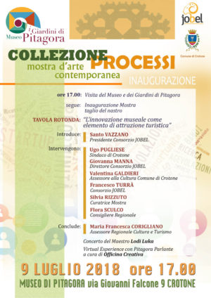 Nella suggestiva cornice del Museo di Pitagora, divenuto centro propulsivo della cultura crotonese, lunedì 9 luglio alle ore 17, sarà inaugurata la mostra “Collezione Processi” allestita con opere di grandi maestri dell’arte contemporanea tra cui Jannis Kounellis, Mimmo Rotella, Bruno Ceccobelli.