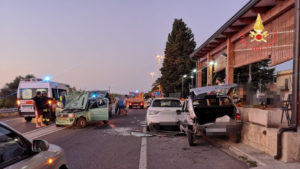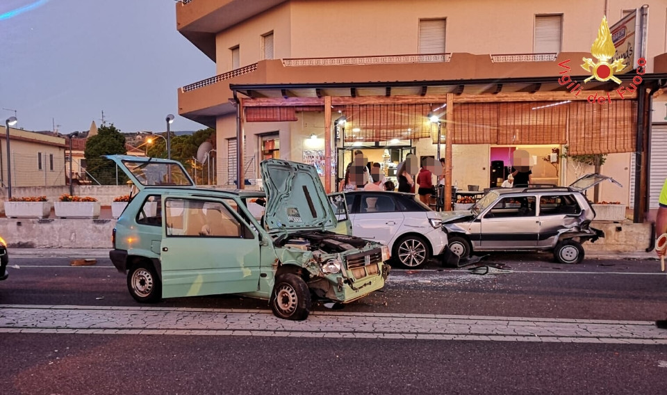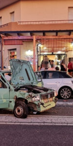 Una Fiat Panda, per cause in corso di accertamento, perdeva il controllo andando ad impattare violentemente contro due autovetture una Fiat Panda e una Audi A1 che sostavano in prossimità di un bar caffetteria.