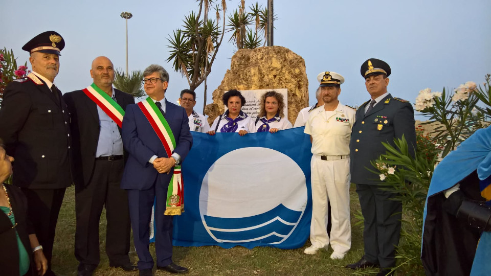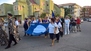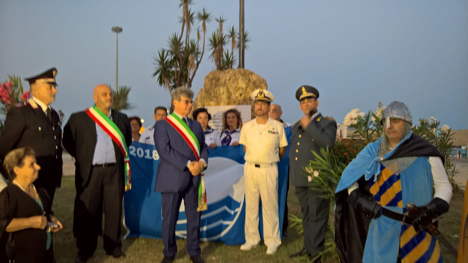 Accompagnata dal poderoso rullo dei tamburi e squillo di tromba degli sbandieratori di Taverna, la diciottesima Bandiera Blu, è stata issata sul pennone dell’area Portuale . Operazione eseguita dall’associazione dei marinai in pensione che hanno retto la bandiera per tutto il percorso. Partita da Piazza Kennedy, sede del Comune, la stessa con il Commissario prefettizio, Giuseppe Gualtieri e tutte le autorità militari, religiose e civili presenti, , Carabinieri, Finanza, Capitaneria di Porto, il parroco Don Gianni Filippelli e rappresentati del mondo associazionistico, il corteo si è snodato fra rulli di tamburi e scenografiche esibizioni degli sbandieratori fino l’area portuale dove appunto è stata issata la bandiera.