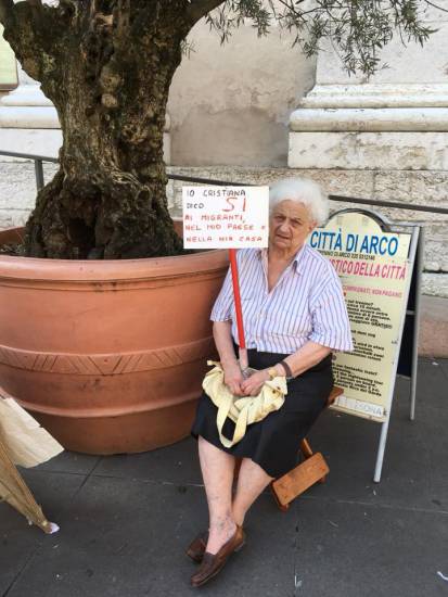 Arco, sit-in dell’83enne: "Sì ai migranti in paese e nella mia casa"