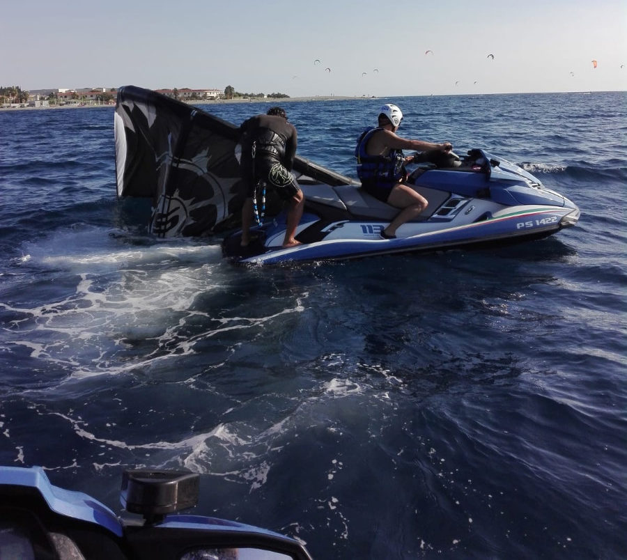 In particolare, gli Agenti, impegnati nel servizio di vigilanza costiera ravvicinata dei litorali, per monitorare eventuali comportamenti illeciti a discapito della sicurezza della balneazione, al largo di Pellaro, hanno notato un giovane Kitesurfer che, a cause delle condizioni meteo-marine, è stato trasportato alla deriva lontano dalla costa.