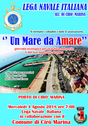 La Lega Navale Italiana – Sezione di Cirò Marina in collaborazione del Comune di Cirò Marina, promuove per il prossimo 4 agosto 2018 alle ore 7,00, NEL PORTO, PER LA PULIZIA DELL’AREA PORTUALE. Spiagge e fondali puliti, è un’occasione che apre a tante possibili sinergie sul