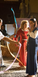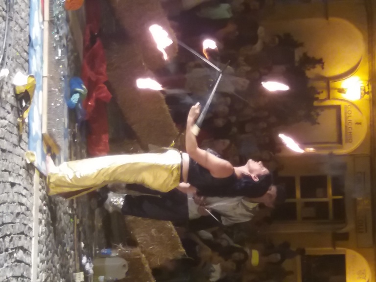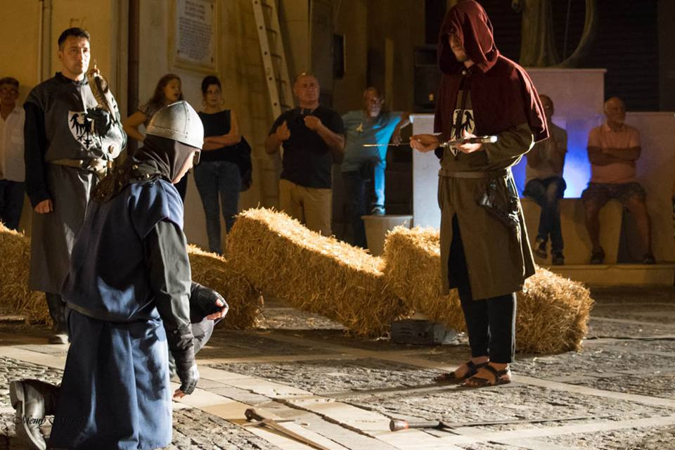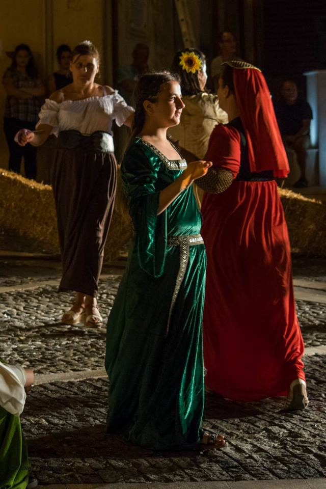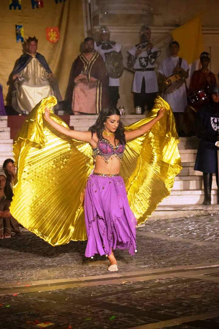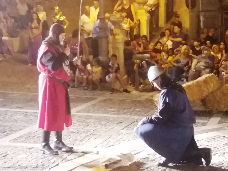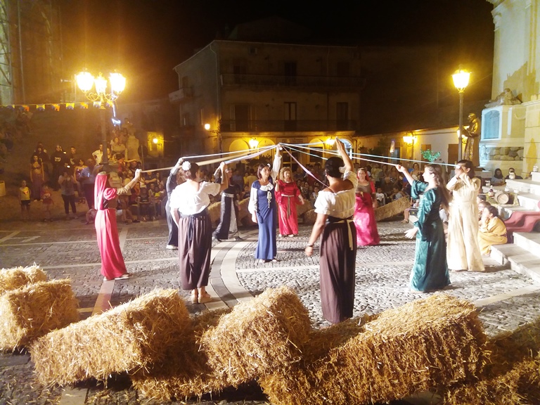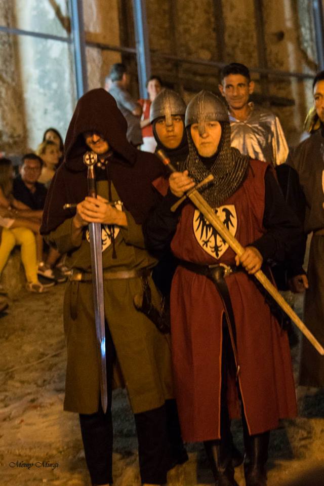Durante la serata si sono esibiti vari artisti dalla danzatrice del ventre, ai falconieri , fachiri , tamburatori, giullari, combattimenti medievali, uno spettacolo che tra storia e fantasia avrà lo scopo di valorizzare ancora di più il borgo cirotano ricco di arte e cultura. Si tornerà indietro di tanti anni, il Medioevo tra cavalieri, dame, principesse e conti. La nostra idea ha detto la presidente Blefari- nasce dalla volontà di valorizzare ancora di più il borgo ricco di storia arte e cultura, tornare indietro di tanti anni, nel medioevo in particolare nel 1496 quando il feudo fu e acquistato dal conte di Santa Severina Andrea Carafa, del suo successore al feudo, Galeoto e la moglie la principessa D’ Aquino Proprio in questo hanno abbiamo “voluto” omaggiare il popolo cirotano dando vita ad uno spettacolo in loro onore, con momenti di arte, di danze, di combattimenti, durante la serata tanti sono stati gli artisti che si sono esibiti falconieri cavalieri danzatrici fachiri tamburatori i quali hanno regalato al pubblico presente tanta emozione avendo da scenografia naturale il meraviglioso e imponente castello di Cirò che ha creato un atmosfera unica.